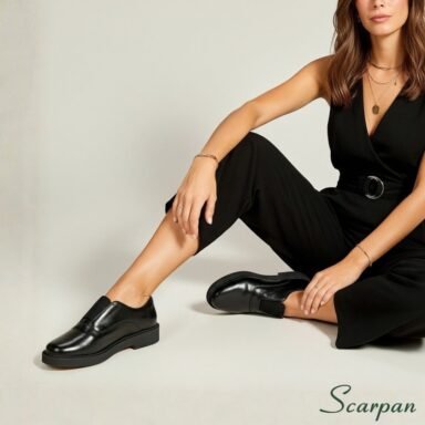 Oxford em Couro com Elástico e Salto Bloco 106.174 Preto