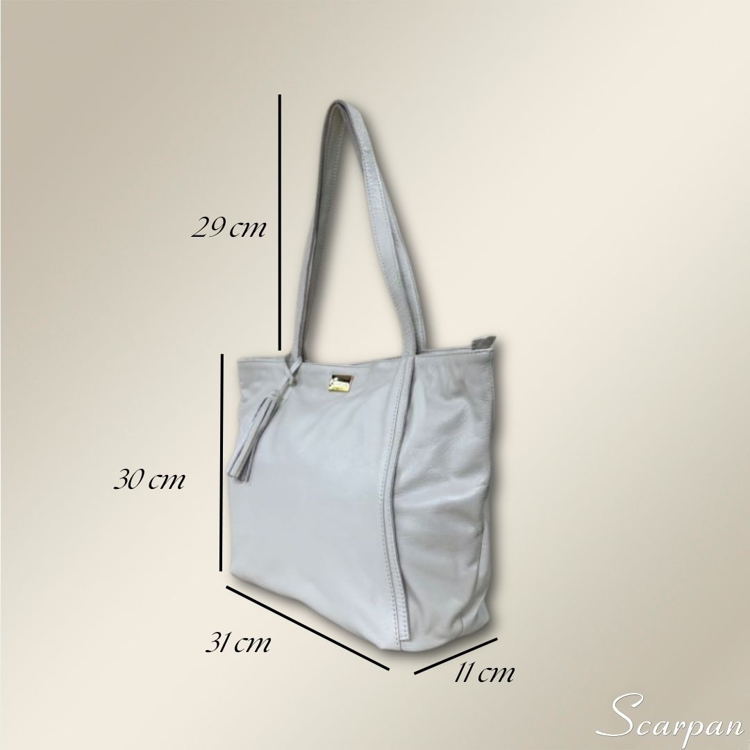 Bolsa sacola Isabel em couro legítimo, estilo shopper feminina. Espaçosa, elegante e prática para trabalho, faculdade, rotina e viagens.