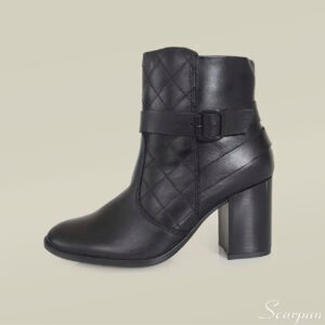 Bota Couro Salto Grosso Cano Curto Havana Scarpan. Perfeita para acompanhar suas produções, roubando toda a cena. Ela foi produzida em couro legítimo com detalhes de costura no couro e uma fivela para dar um toque a mais. Seu solado é de TR emborrachado, forro em material têxtil e fechamento de zíper.