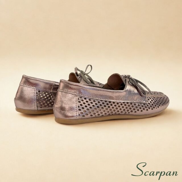 Mocassim com Laço em Couro Vazado: Sofisticação e conforto em couro legítimo metalizado. Com solado TR de 2cm, palmilha EVA 2mm e apenas 400g, este calçado é ideal para o dia a dia, combinando a elegância do Mocassim com Laço com a respirabilidade do couro vazado. É a união perfeita de estilo e bem-estar para todos os seus momentos.