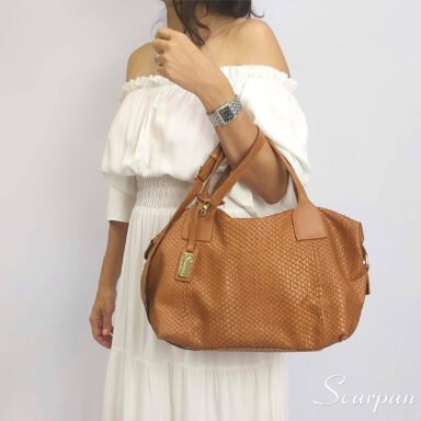 – O couro é um material animal, muito resistente e também delicado, como nossa pele, cuidado com objetos cortantes para não danificar sua bolsa.