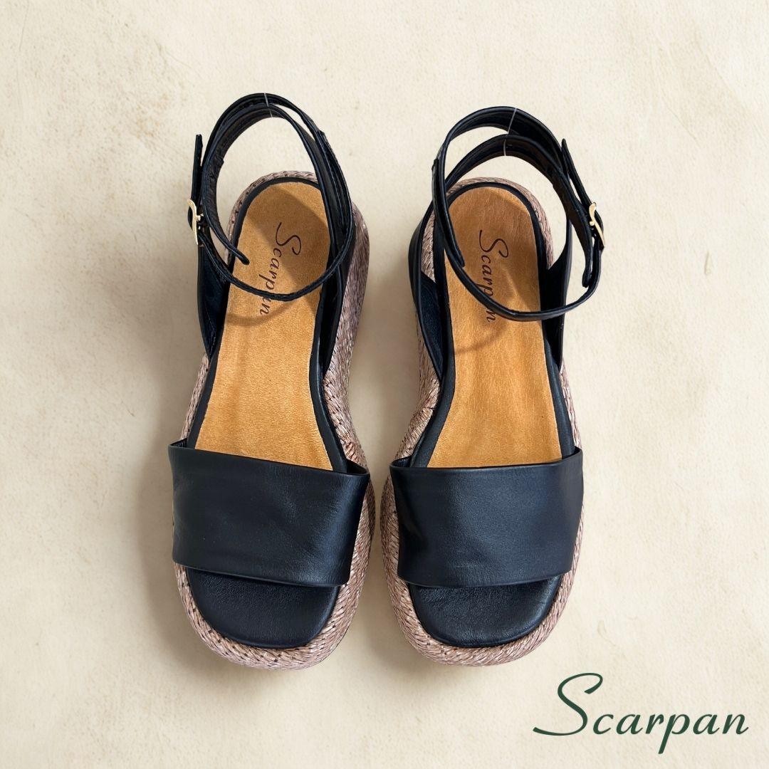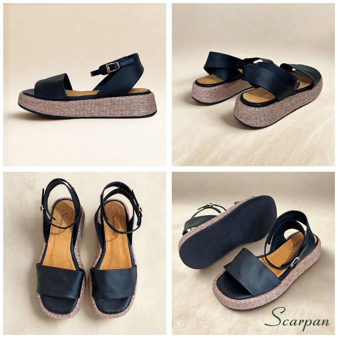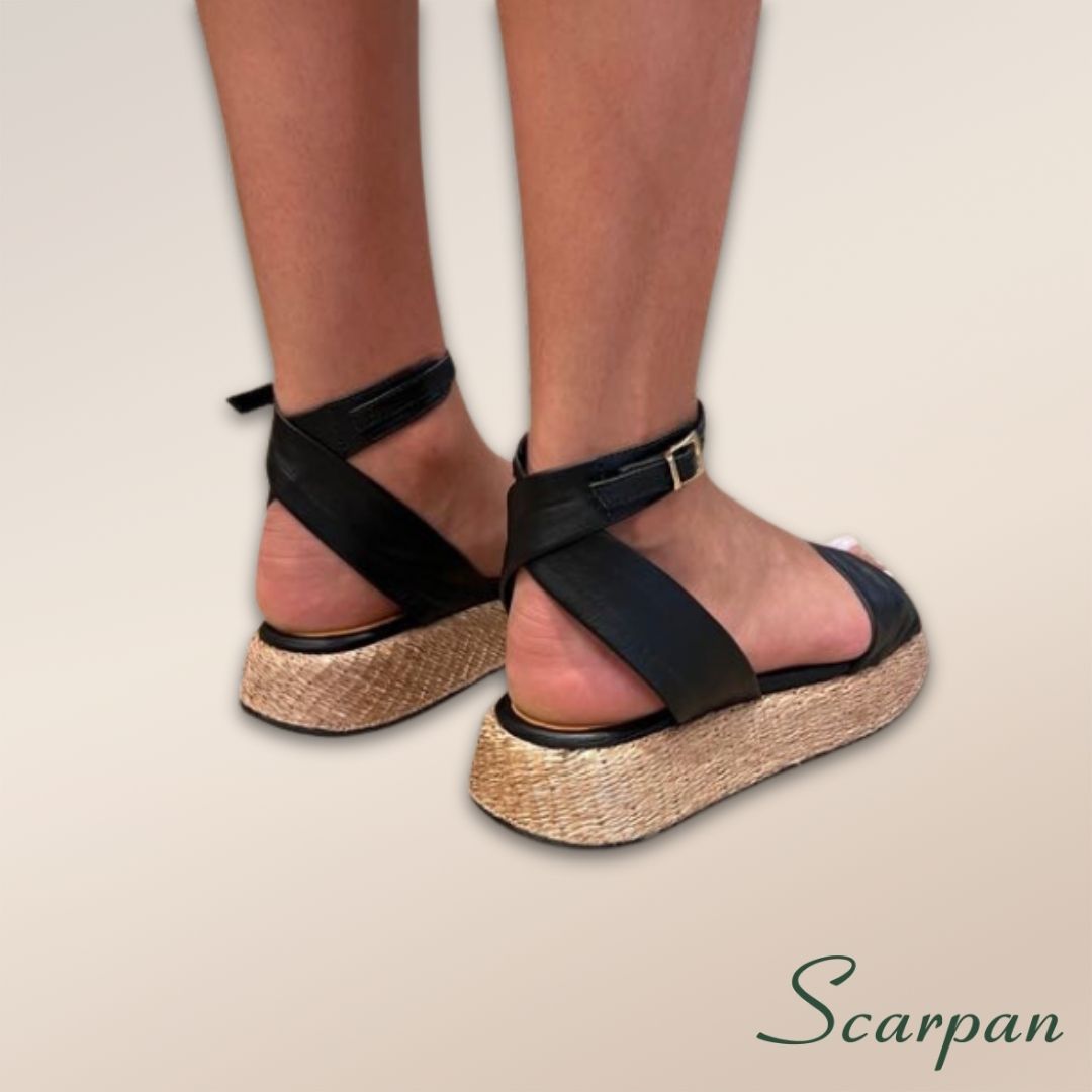 Sandália Feminina Flatform Preta em Couro Legítimo – Elegância e Conforto Scarpan