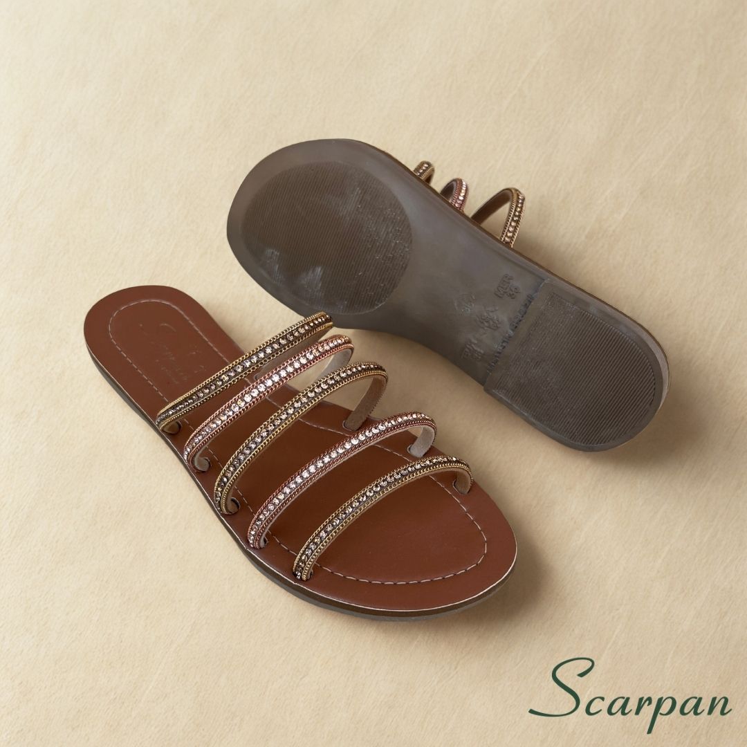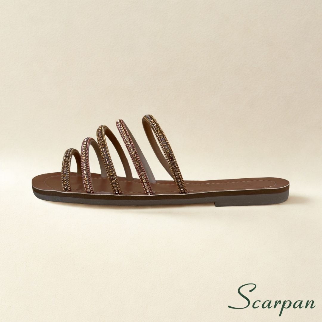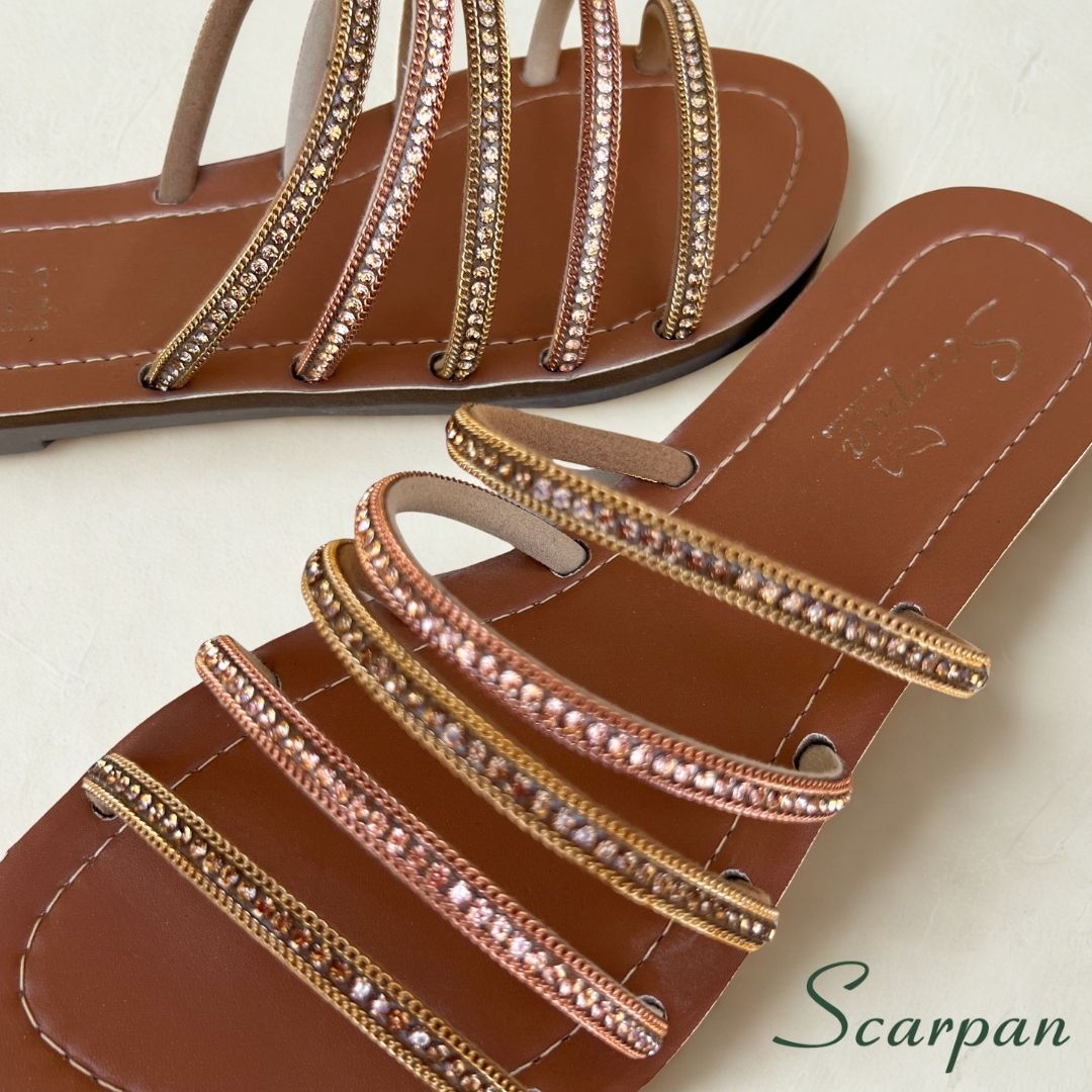 O foco da marca Scarpan é sempre trazer muito conforto com material de qualidade, oferecendo um preço justo e acessível. Afinal de contas, sabemos que o luxo não precisa ser inacessível. Dessa forma, ao escolher esta Sandália Rasteira Slide com Pedraria, você investe em um calçado que une o brilho da pedraria com a garantia de uma palmilha macia em EVA e a praticidade do slip-on.