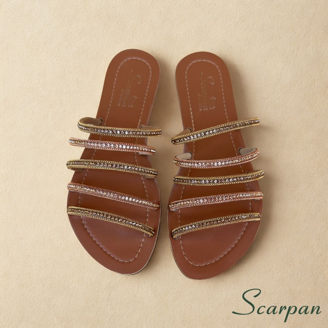 Sandália Rasteira Slide com Pedraria – O Glamour do Calce Fácil