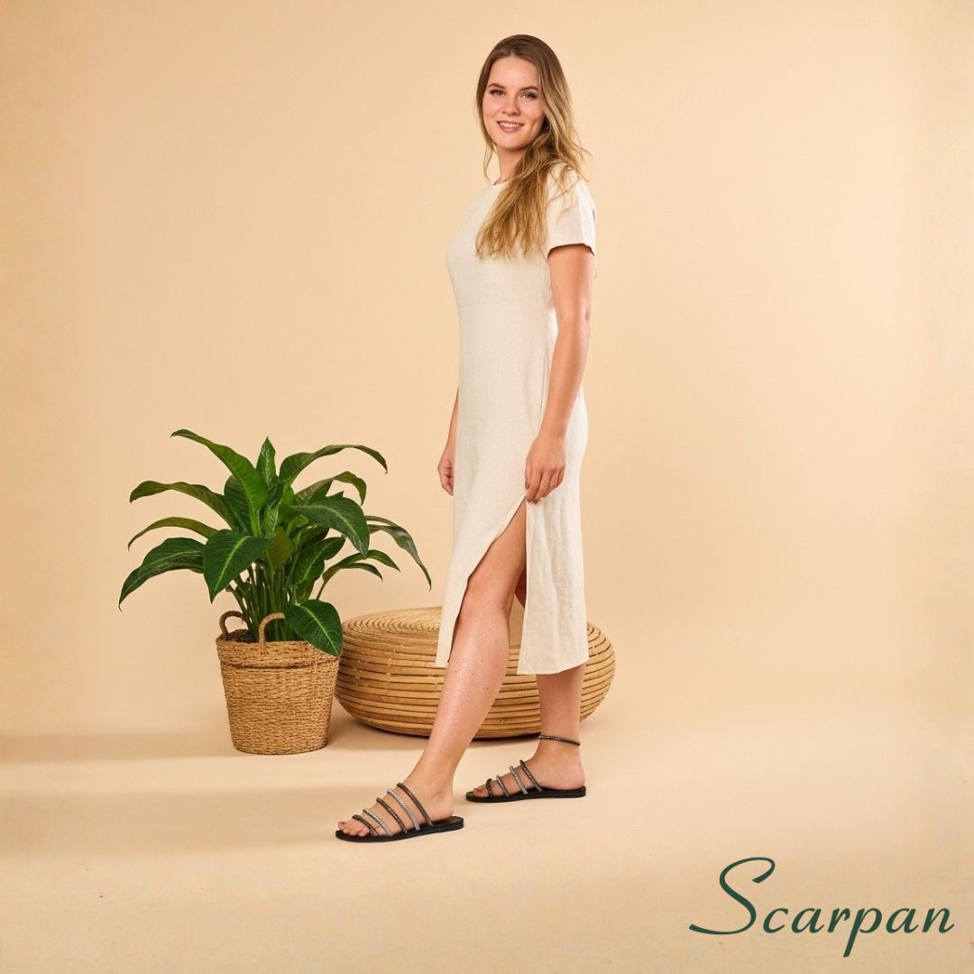 Ocasiões Especiais: Use-a com vestidos de coquetel diurno ou saias lápis. A rasteira com brilho oferece a solução chique e confortável para festas durante o dia.