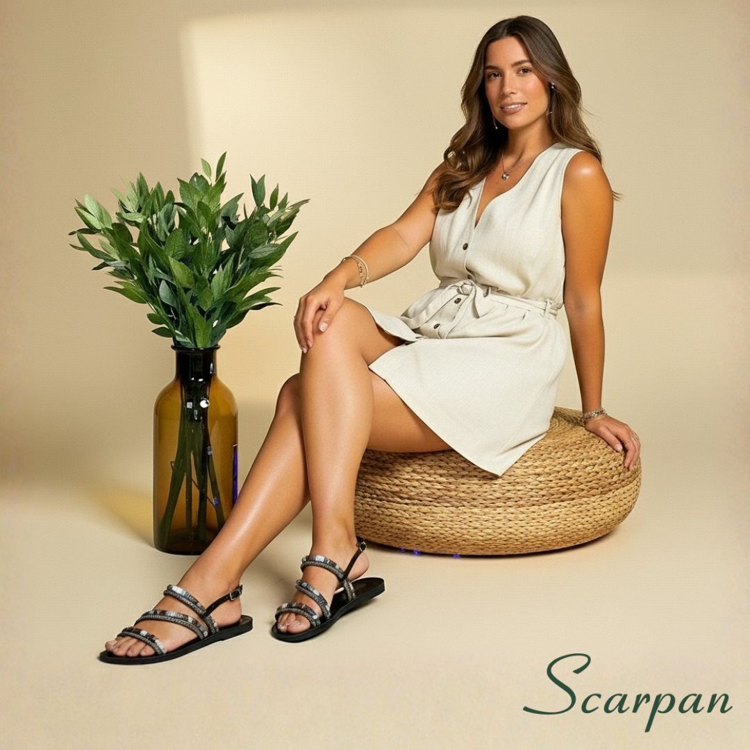A Sandália Rasteira Preta Colorida com Strass da Scarpan oferece o contraste perfeito entre a sobriedade do preto e a alegria dos detalhes vibrantes. Criamos este modelo para a mulher que deseja um calçado charmoso, descontraído e, acima de tudo, extremamente confortável para os dias quentes. Portanto, esta sandália é ideal para ocasiões casuais, passeios ao shopping ou ao parque, agregando um visual super delicado e descontraído, sendo fácil de combinar.