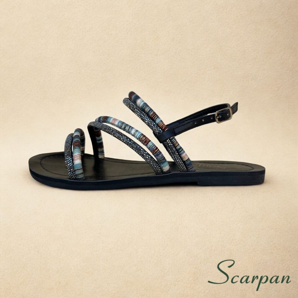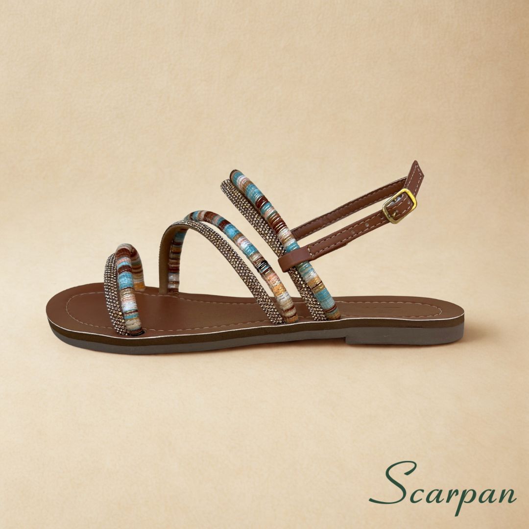 A Sandália Rasteira Colorida com Strass da Scarpan oferece o charme descontraído e vibrante que o seu verão precisa. Criamos este modelo para a mulher que aprecia a moda boho e busca um calçado que seja super delicado, charmoso e, acima de tudo, extremamente confortável para os dias quentes. Portanto, esta sandália é ideal para ocasiões casuais, passeios ao shopping ou ao parque.