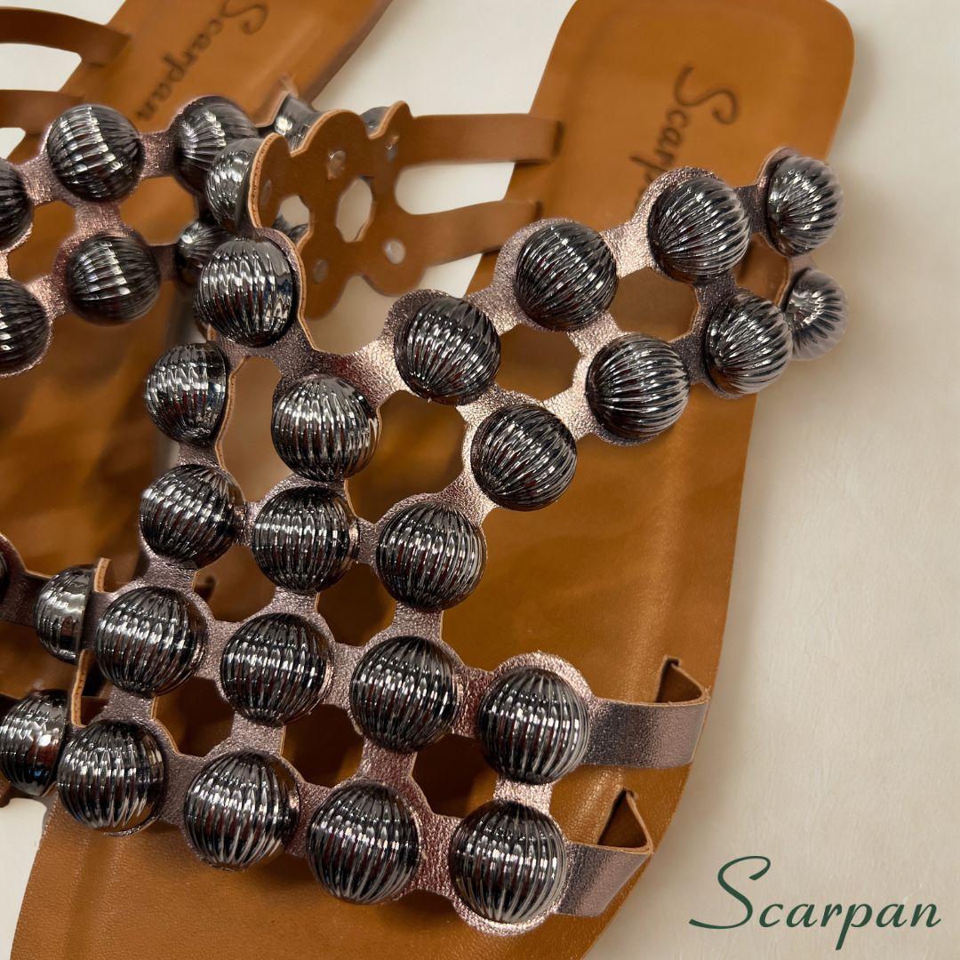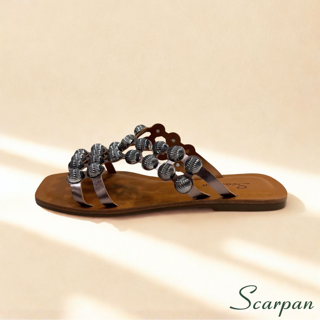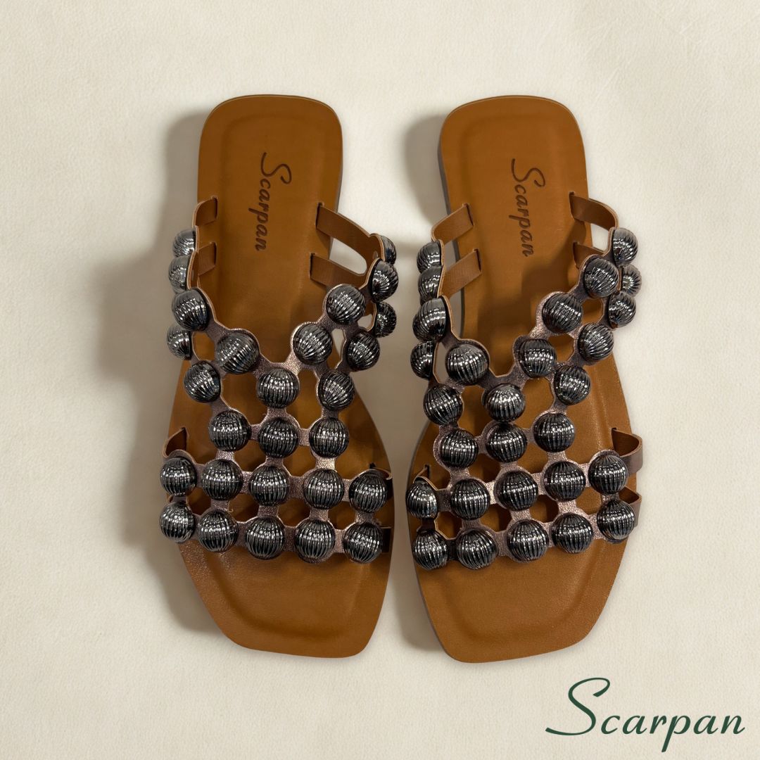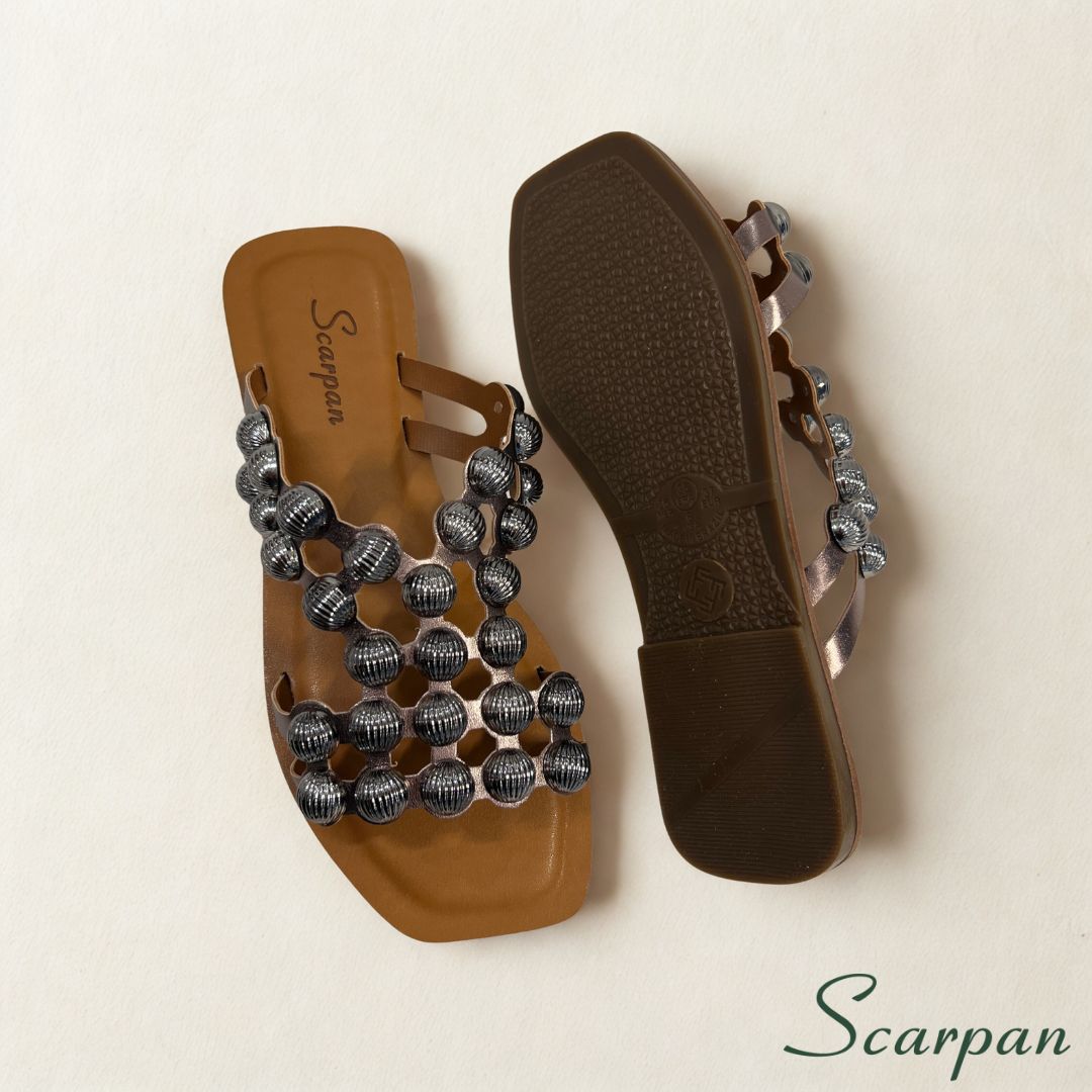🩰 Sandália Feminina Rasteira em Couro com Aplicações Ônix – Scarpan