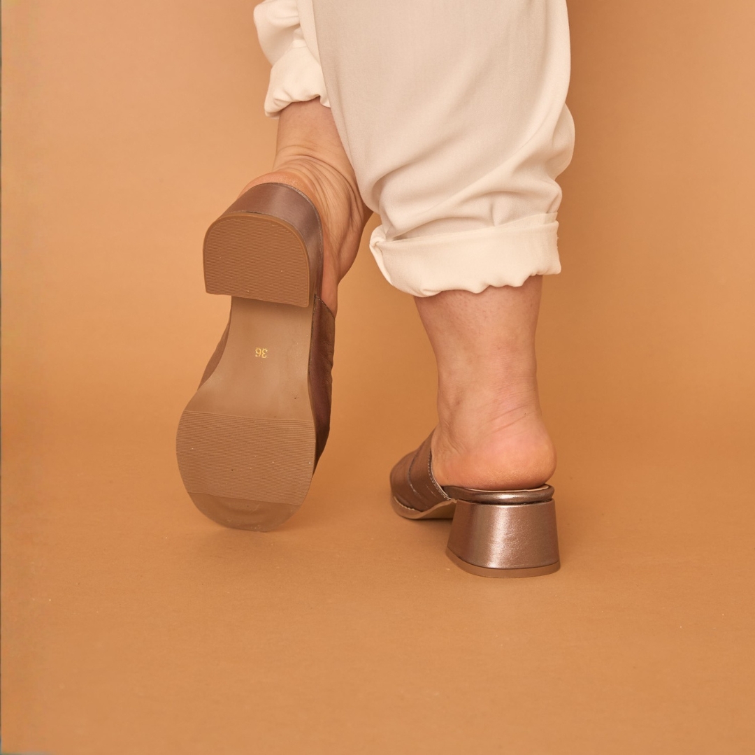 Sandália Tamanco Feminina em couro – Salto Bloco de 4,5 cm