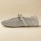 O detalhe com tira e esferas metálicas na parte superior é um charme à parte. Ele adiciona um toque sofisticado, tornando a sapatilha perfeita para quem valoriza o equilíbrio entre beleza e conforto.