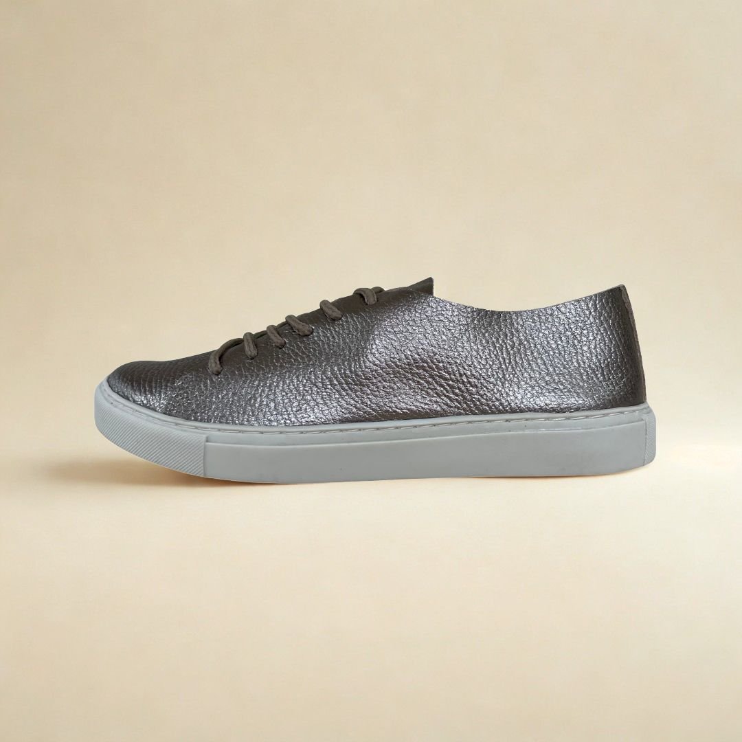 Tênis Casual Feminino de Couro Prata Velho – Mia