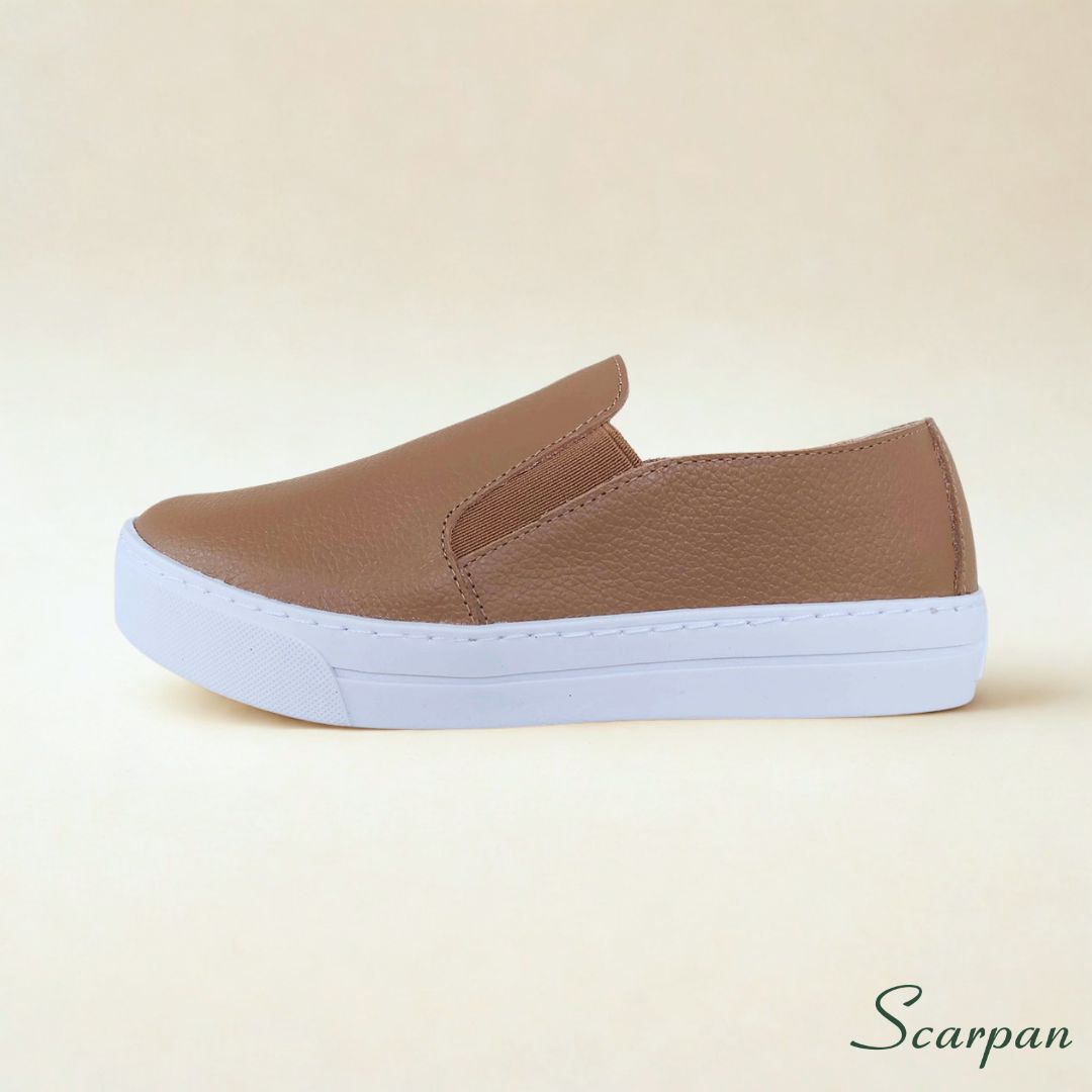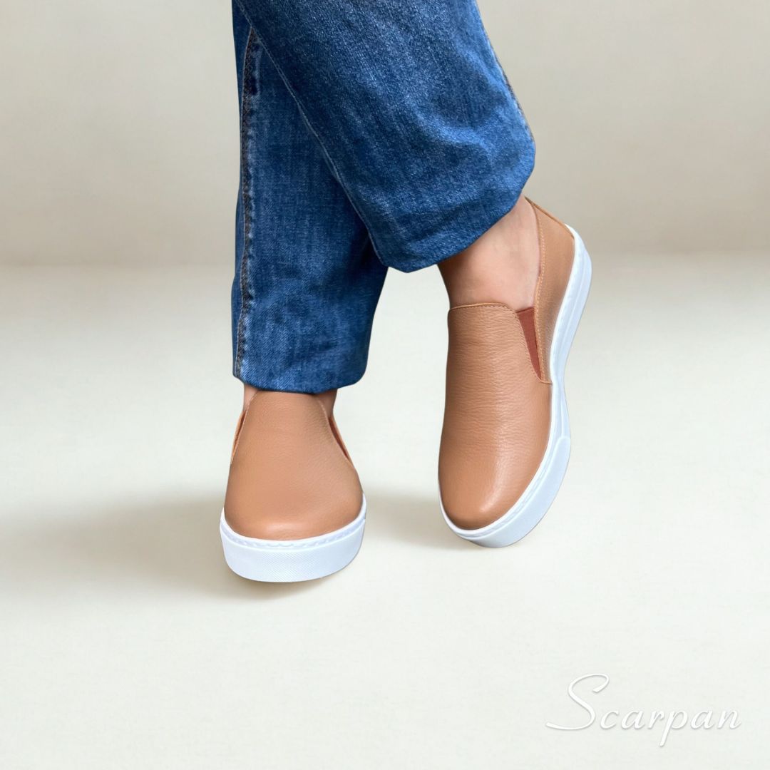 Tênis Slip On de Couro Caramelo – 153.092